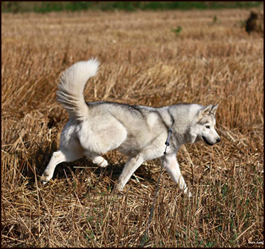 Quinny was the one who changed us, because of her we started to think in a different way about breeding. She is something special. When I have to say my thoughts about her I'm just smiling :). She is a real husky, never bored, always ready to play and work. She joined our pack at her 8th month of age, and from the first day she is with us, she leads our small pack (of course just after the humans). I call her fairy because she is a real fairy in her apperarance, she is so bitchy and at the same time so strong, has so nice and sweet expression, good lenght of legs and you can not hear her moving... She finished her junior and adult championship in a very limited showing. She had one litter at us, and we have no more breeding plans with her. I'm pleased that she lives with us, and is part of our pack...