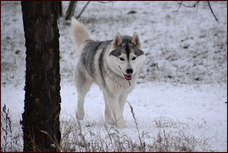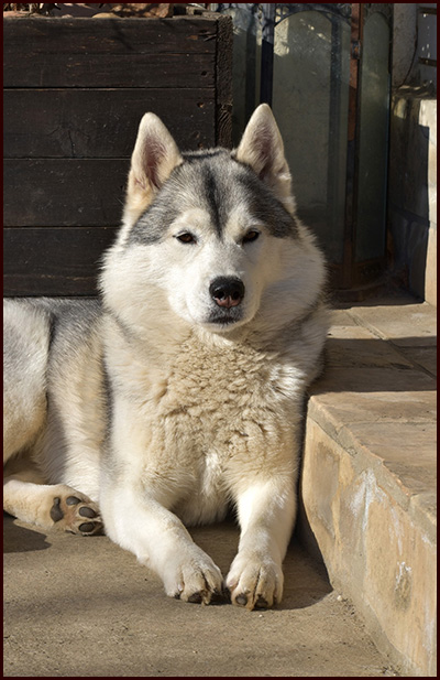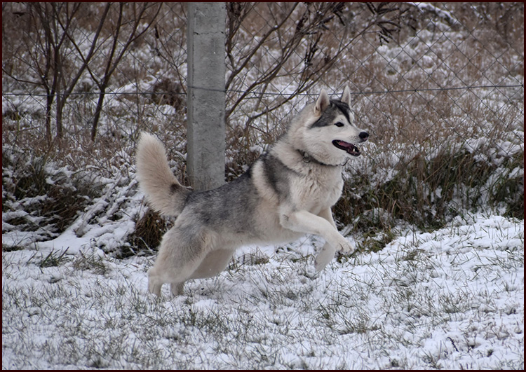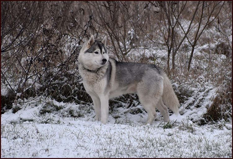Zoya was the only girl in the litter we planned for years, so keeping her was not a question. She is a very live and naughty girl. A real Siberian, always happy, always ready for some action and she has a real smile when wants something, no one can resist her. She has a sweet bitchy head and is a moderate size female with very easy and balanced movement. She shows extreemly big will for work, so we have big hopes in her working carrier and she definitely will be part of our breeding program.
